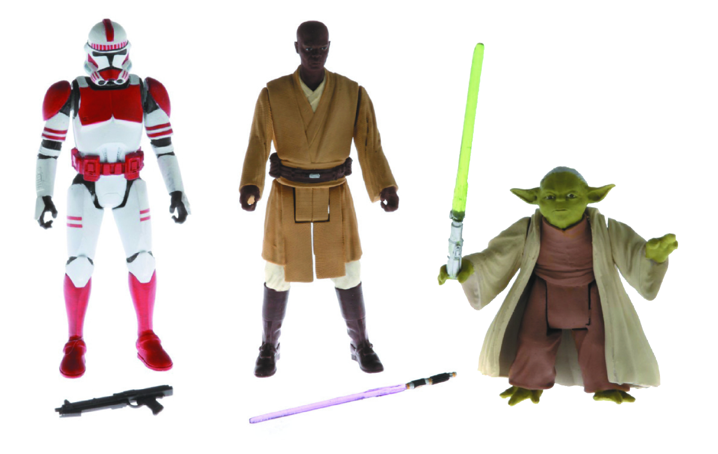 Star Wars Saga Legends action figures. Each 3 3/4" figure comes with accessories and a special collector's coin. Collectors can choose from such figures as