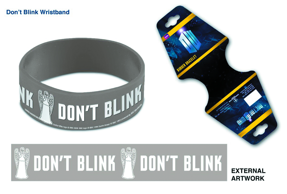 Doctor Who slogans and motifs can you collect! Choose from "Don't Blink" or "Exterminate."
