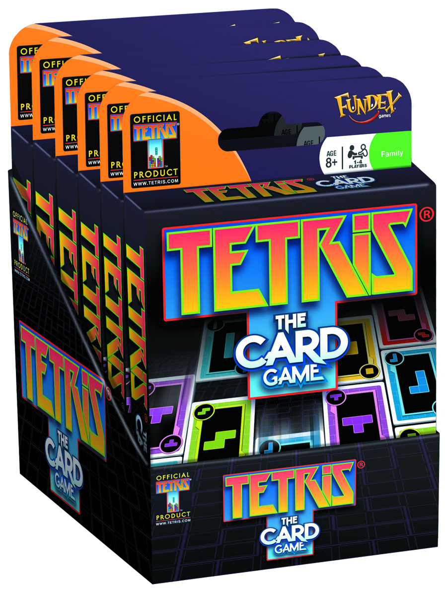 Tetris Card Game, the classic video game goes 3D, and still fits in the palm of your hand! Using the Tetrimino shapes that appear on the card fronts, players compete to complete lines that appear on the Tetris Matrix images on the card backs. The first player to clear 10 lines is the winner!