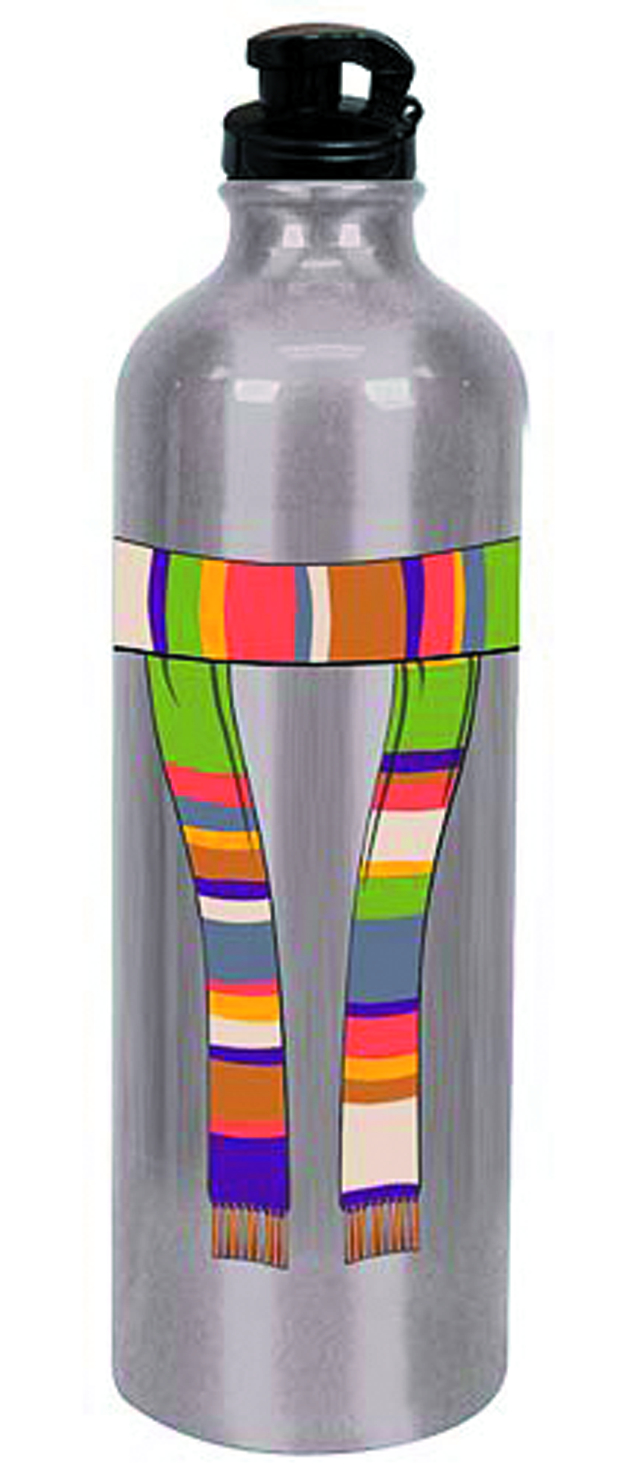 When you need liquid refreshment on the go, turn to the Doctor Who Water Bottles! Decorated with the accoutrements of the fourth Doctor (his scarf) and the eleventh Doctor (his bowtie), these stainless steel water bottles hold 750 mL.