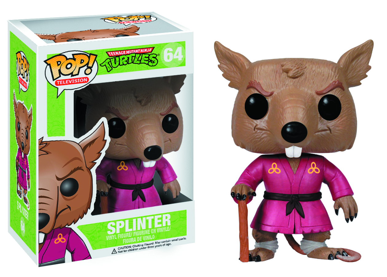 Currently starring in comics from IDW Publishing and soon to star in a new film from Transformers director Michael Bay, the Teenage Mutant Ninja Turtles are the latest sensation to join Funko's fan-favorite POP! Vinyl Figures line! These 3 3/4" tall figures of Leonardo, Donatello, Michaelangelo, Raphael, Shredder, and Splinter feature multiple points of articulation and the stylized urban design that have made these figures so popular. Collect them all to get the heroes on a half-shell! Window box packaging.