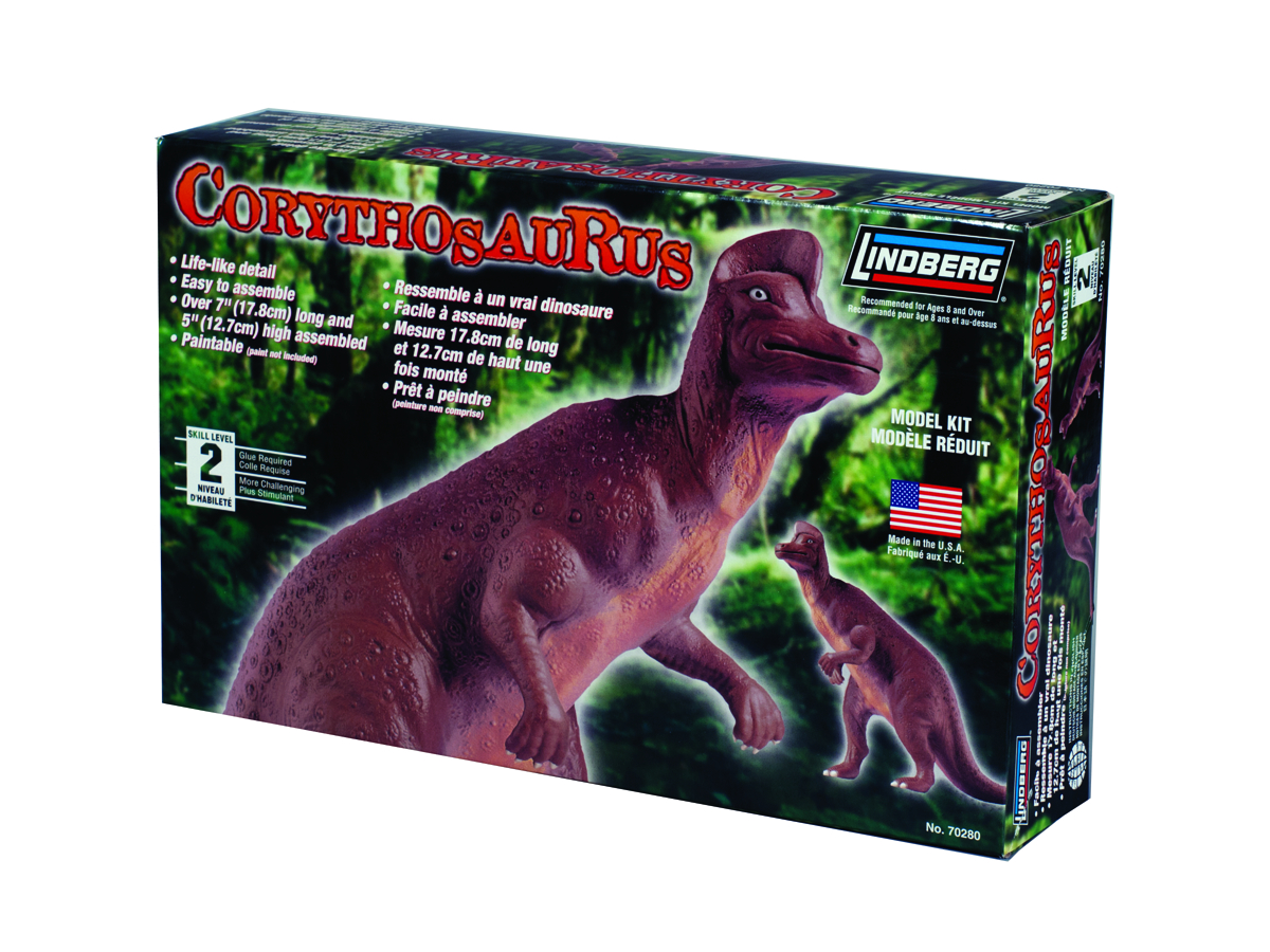 The Thunder Lizards walk the Earth once more with the new dinosaur model kits from Lindberg! The Ankylosaurus is an armored dinosaurs, and it measures 7" long and 2" tall when complete. The Apatosaurus is a mighty leaf-eater, and it measures over 10" long and 3" tall when finished. The Corythosaurus measures 7" long and stands 5" tall. The Velociraptor is ready to hunt its prey for a model that measures 15" long and stands 7" tall. Each model is easy to assemble and requires paint and glue to complete.