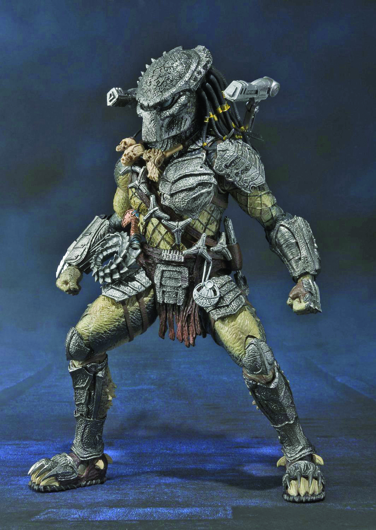 Predator Wolf (Heavy Armed Ver.)! This 7" tall deluxe figure is only available as a web exclusive in Japan, but comes to North American shores as a regular release. Tamashii Nations' creative team has made use of both resin and diecast materials for the very best results in quality while perfectly maintaining the realism seen on screen. This version of the character contains extra tools, such as claymores with removable holsters and two shurikens. Additionally, this version of the Predator Wolf will feature two plasma cannons, a big cannon, and alternative parts in order to depict the cannon after being broken. Both short and long spears, as well as coiled and uncoiled whip parts are also featured, in addition to interchangeable heads and a full array of interchangeable hands. In the world of