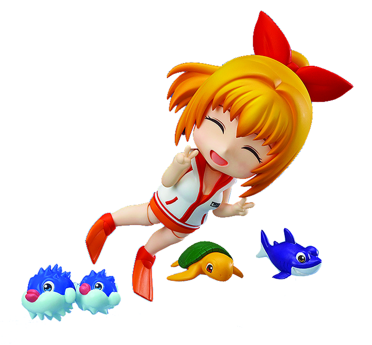 Marine-chan! Her cheerful and energetic personality has been converted into chibi size for fans to enjoy! Marine-chan comes with three different expressions including her standard face, a radiant smiling face as well as a cute winking face. She also comes with flippers and a selection of sea creatures as optional parts allowing you to recreate various scenes and poses from the pachinko machine!