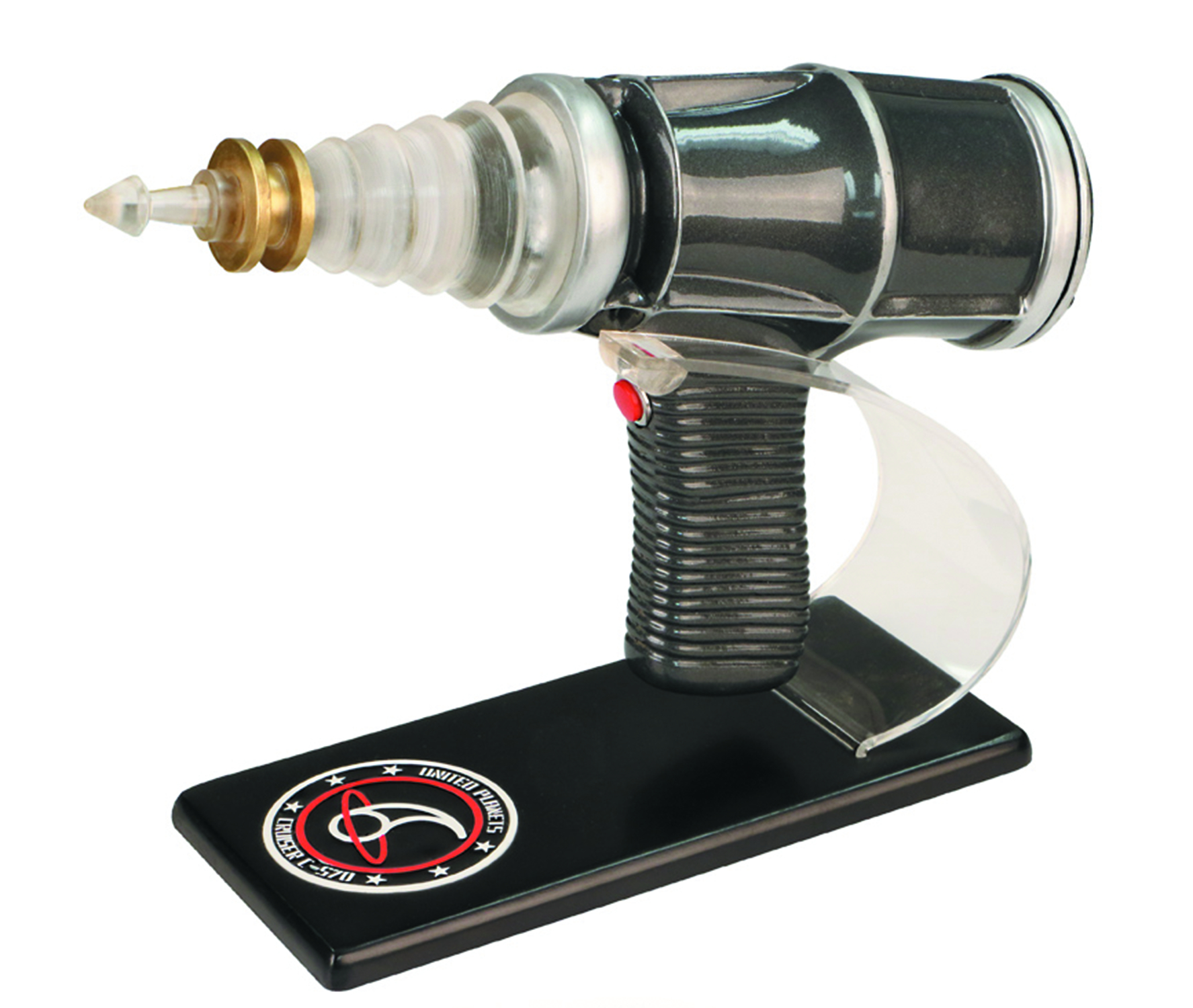 From Museum Replicas. This precise replica of the pistol used in the classic s-f film features light-up action and a display stand bearing the logo of United Planets Cruiser C-57D.