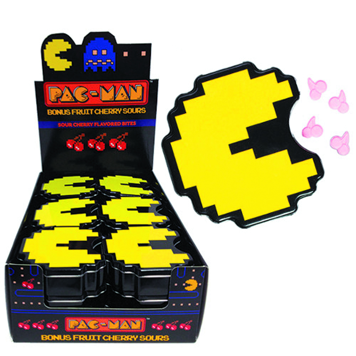 PAC-MAN BONUS FRUIT CHERRY SOURS CANDY TIN 18PC DISP