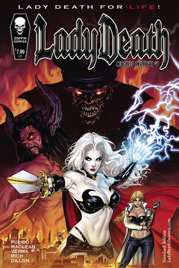 Herr Reich, a rogue Nazi scientist has kidnapped Jake the last innocent in Hell because he suspects he is the key to enacting his master plan and conquering Hell. But Lady Death ain't having it. Aided by Haxan and Hellrider, the diva of death plans to rescue Jake and dismantle everything Reich hold dear! But is it even possible? Featuring the sadistic Frau Helga and introducing newcomers Steelheart and Mr. Atticus Marrow and re-introducing Thanatos, demon lord of Hell, Wargoth of the Everkind and Eldritch princess Caprice.