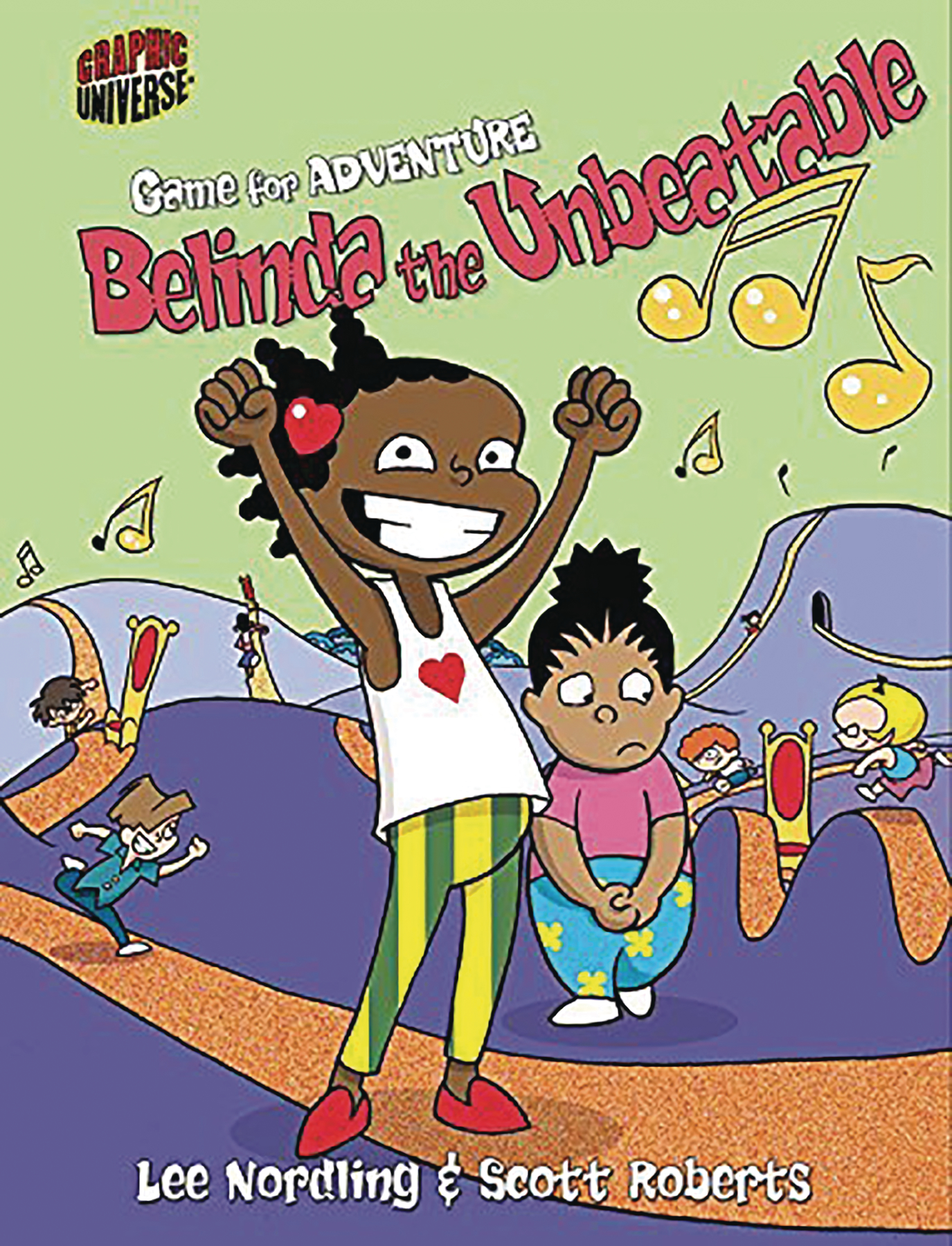 Belinda's upbeat. Her best friend, Barbara, is shy. But both of them are joining a magical game of musical chairs! When the music starts, the girls' school gym becomes a tricky, colorful obstacle course. Will Belinda and Barbara's friendship keep them in the game? Find out in this word-free graphic novel that features lovable characters and fun fantasy takes on classic children's games such as hide-and-seek. The books instill positive messages and engage readers with crisp, colorful artwork.