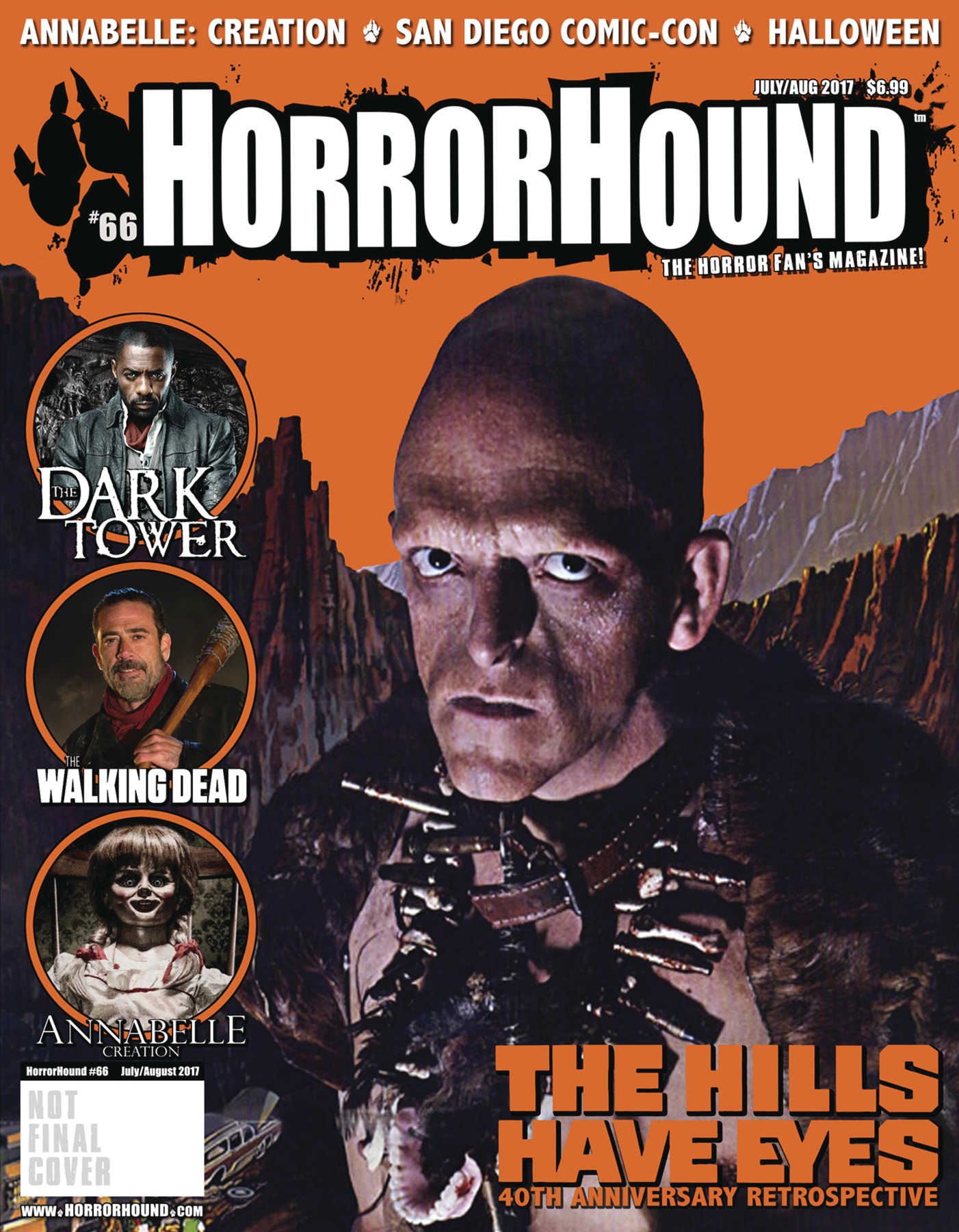 The Hills Have Eyes, which celebrates its 40th anniversary this year. A special guide to cannibal-fueled cinema is included, as well as the latest movie news, comic book and toy news, plus all of our regular features.
