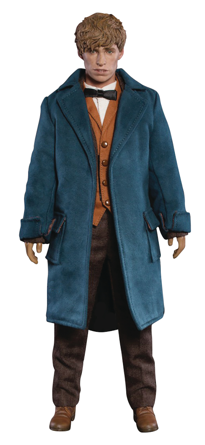 Fantastic Beasts and Where to Find Them featuring the magizoologist Newt Scamander. This Newt Scamander collectible figure features a 1/6-scale articulated body with over 30 points of articulation. He stands approximately 11" tall and features a fully realized authentic likeness of Eddie Redmayne as seen in the movie with accurate facial expression and detailed skin texture. Four interchangeable hands, tailored cloth costume, and accessories including Newt's wand, full and partial niffler, and briefcase are included!