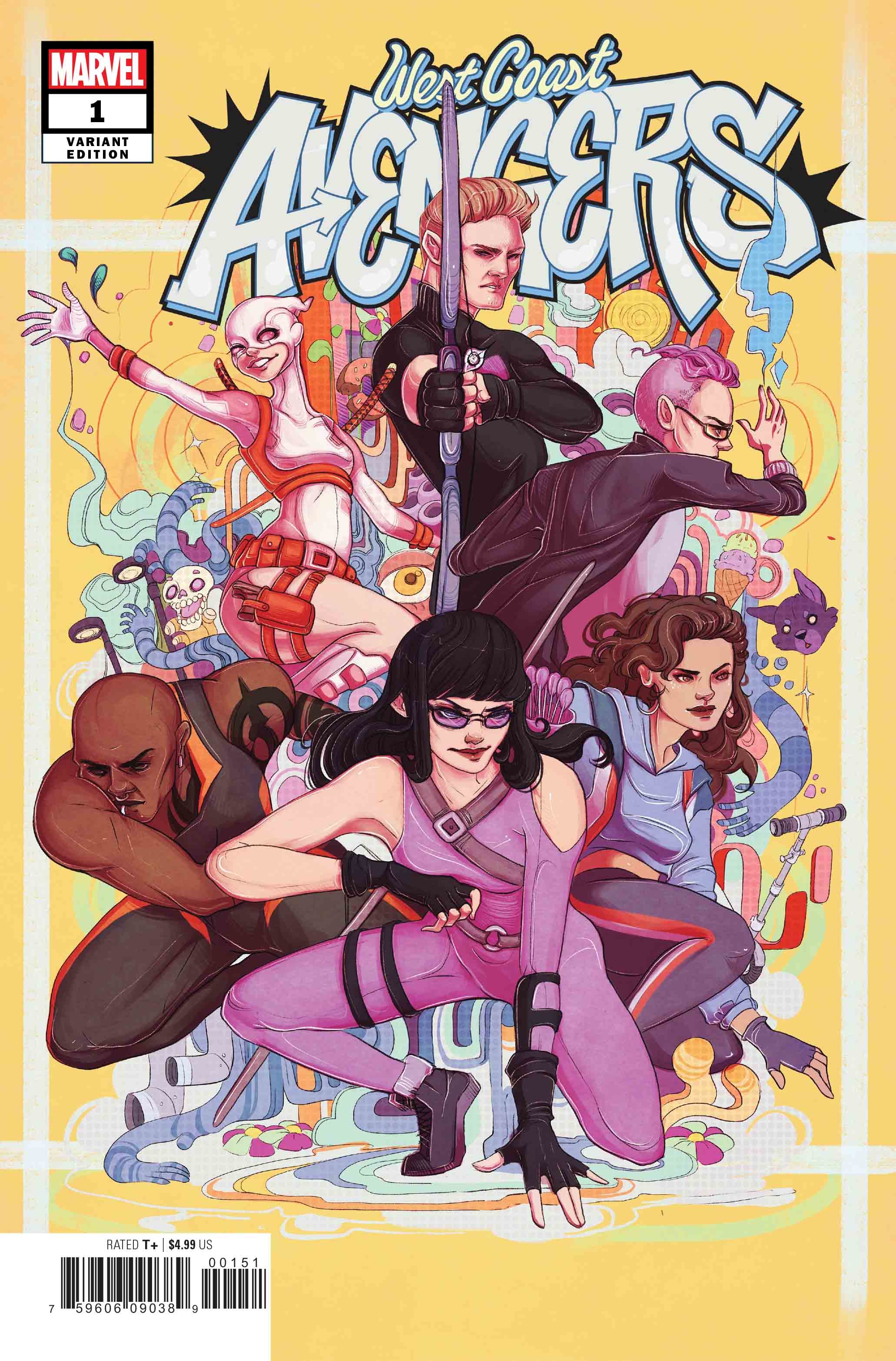 HAWKEYE (KATE BISHOP). HAWKEYE (CLINT BARTON). A guy named FUSE. Never have they ever been called "the big three" of...anything. And now here they are, reunited for, okay, well, it's only the second time ever. Thank god they also brought AMERICA CHAVEZ, GWENPOOL and KID OMEGA. Wait. What? That's right, it's the new West Coast Avengers, son. And you better hope they can figure out how to save the world because BIG things are headed for the West Coast.