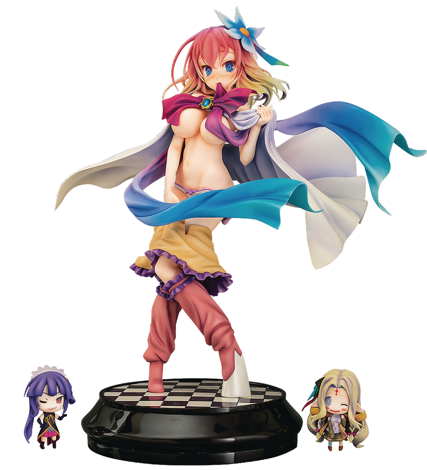 No Game No Life comes a 1/7-scale figure of the Princess of Imanity's Elchea Kingdom: Stephanie Dola! She is posed in a rather revealing pose that shows off her impressive curves...quite different to what you would expect from a princess! Just like the previous releases from the series, the unique creative style of No Game No Life has been carefully preserved on the figure, with careful attention to detail and use of color to capture the sexy Stephanie in perfect form for fans to enjoy in their collection! In addition, chibi figures of Chlammy and File are included to display beside her!