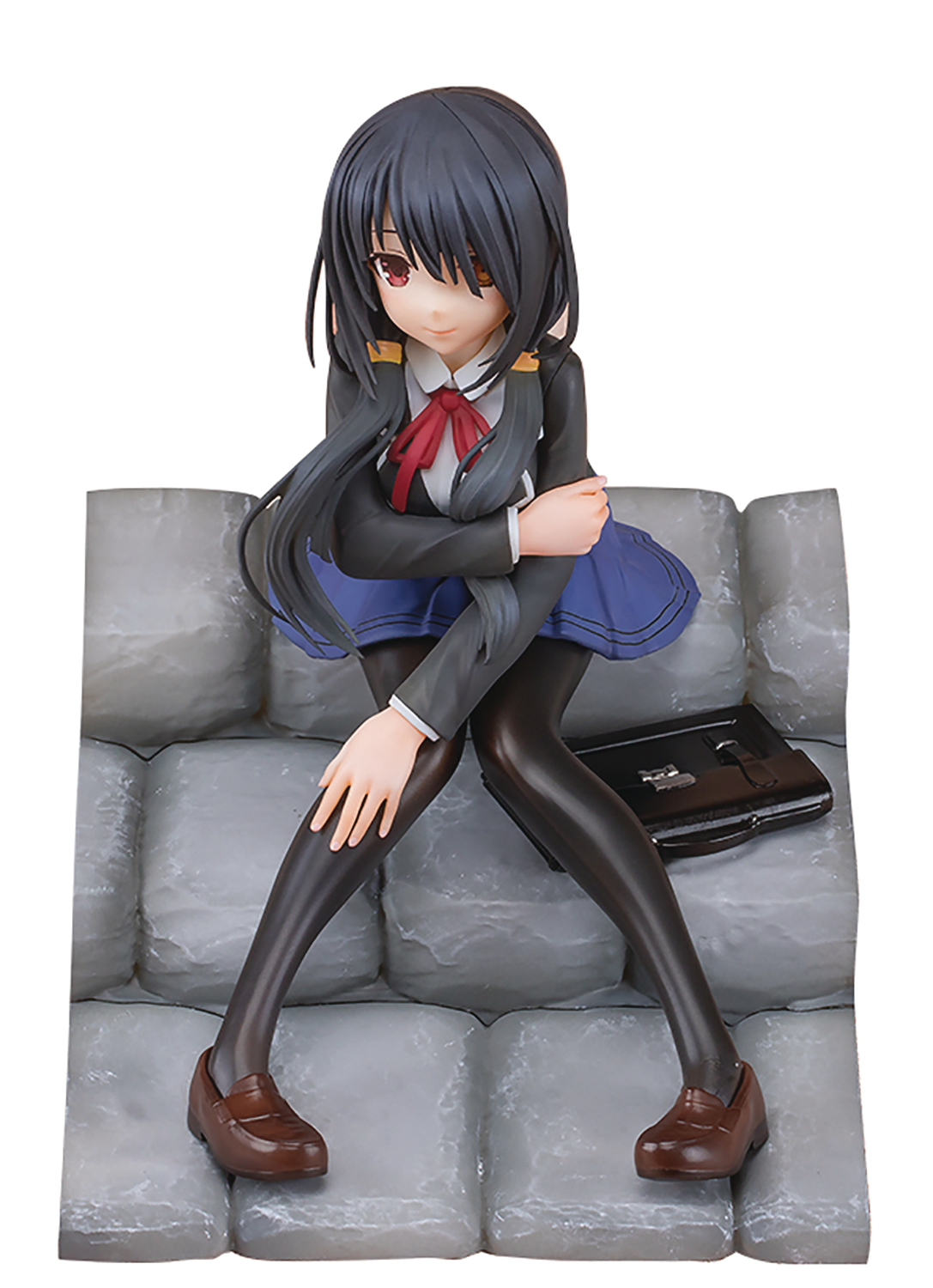 Date A Live Is taking a moment to relax and sit on some stone steps! Based on an illustration by Misaki Sanzuna, the softness of the fabric of her school uniform is carefully sculpted, and her slightly awkward pose with her legs sprawled makes her extra cute! The detail in the stone steps she's sitting on is extra well-done too. All these elements combine to make her a figure you'll love to have in your collection!