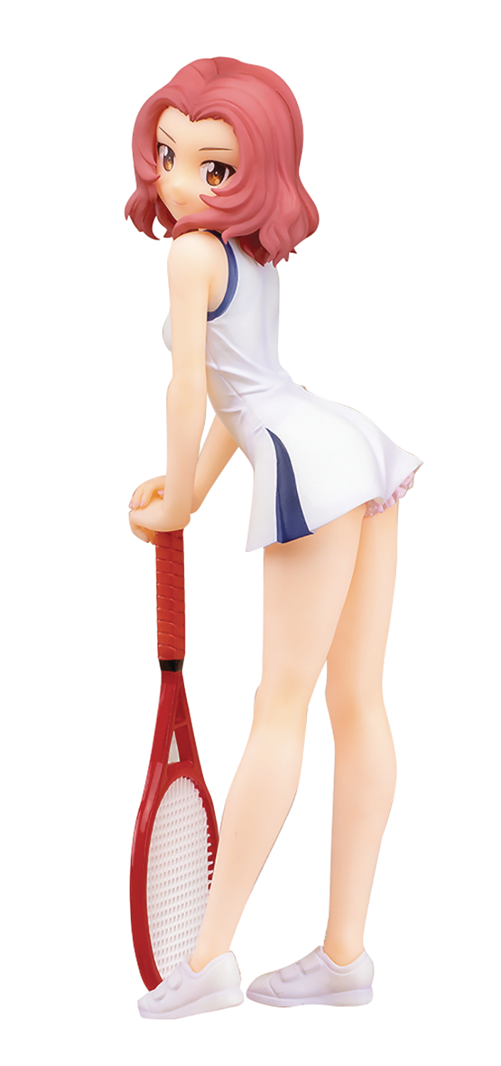 Girls und Panzer der Film poses in a cute tennis outfit, quite different from what we're used to seeing her wear! Its short skirt and sleeveless top are detailed with careful paintwork and intricate sculpting of all the folds and wrinkles in the fabric, and her frilly underwear add a note of sauciness to the outfit, as does her over-the-shoulder glance and smile. She stands about 8 1/2" tall.