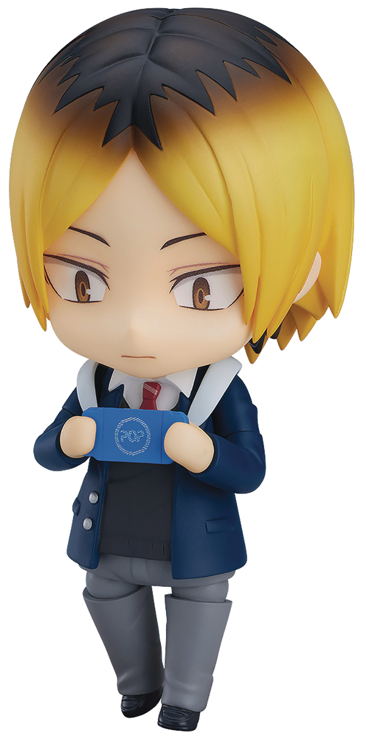 Kenma Kozume wearing his school uniform! He comes with both a standard expression as well as a the disgusted expression that he showed during his match with Karasuno High School! Optional parts include a portable gaming console as well as his backpack allowing for more everyday scenes to be captured in Nendoroid size! He also comes with a round volleyball-themed base as well as a background sheet of the inside of a train allowing him to be displayed on his way to or from school!