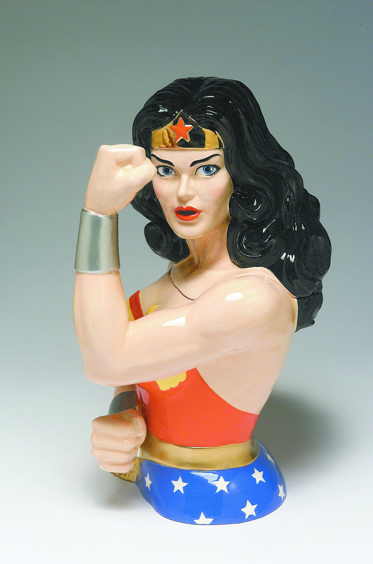 She's the chick with both guts and beauty to boot. And she's gonna put the smack down on you if she catches your fingers in the cookies. This Wonder Woman cookie jar makes sure you don't snack to spoil your dinner time!