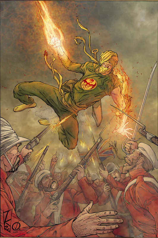 TALES OF THE IRON FIST! When we last saw Bei Bang-Wen, he was leaping to what seemed to be a certain death off the top of the Taku Forts -- would you believe us if we told you that was only the beginning? Join us as we take a look at another one of the fabulous Iron Fists of years past and his legendary legacy in "The Story of the Iron Fist Bei Bang-Wen -- The Perfect Strategy Mind and his Miraculous Travels to the Dark Continent, and What Mysteries of the World and of the Self that He Learned There (1827-1860)" By Matt Fraction and Khari Evans!