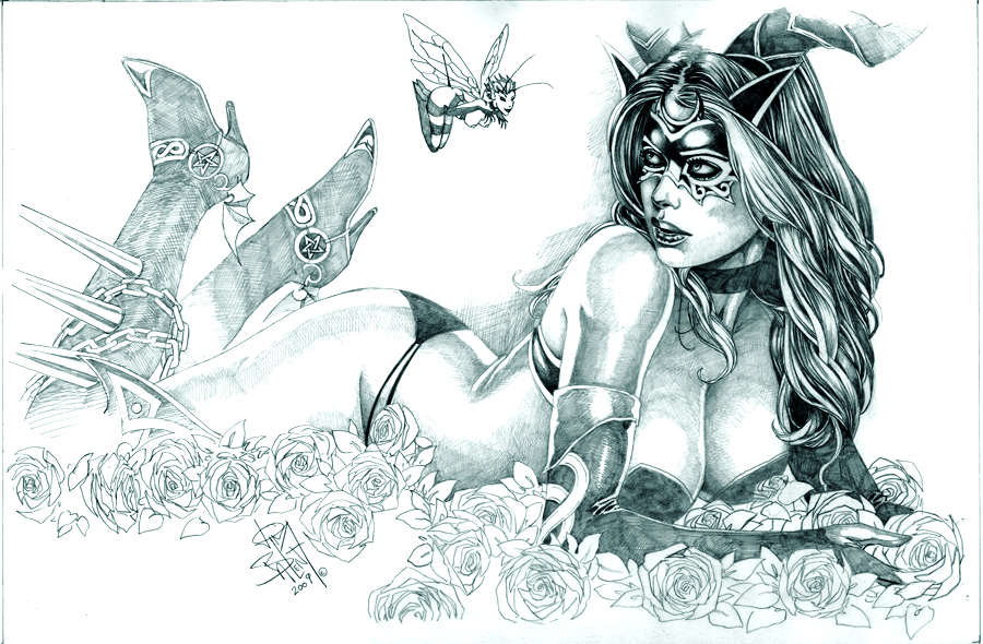 Tarot: Witch of the Black Rose #56 and a black-and-white lithograph of Tarot entitled "Garden Pest." Measuring 6 1/2" x 10", this limited collector's lithograph is pencilled and signed by Balent, and is limited to a printing of 500 pieces.