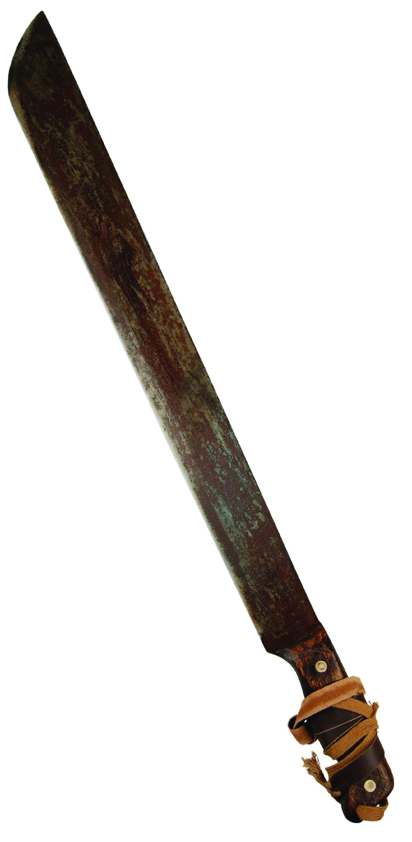 Friday the 13th movie series. This metal and wood reproduction of Jason's iconic weapon is 3 feet in length and has the real weight and feel of an actual machete. The blade edge is dull and this item is not a toy, it is a prop replica for display use only.