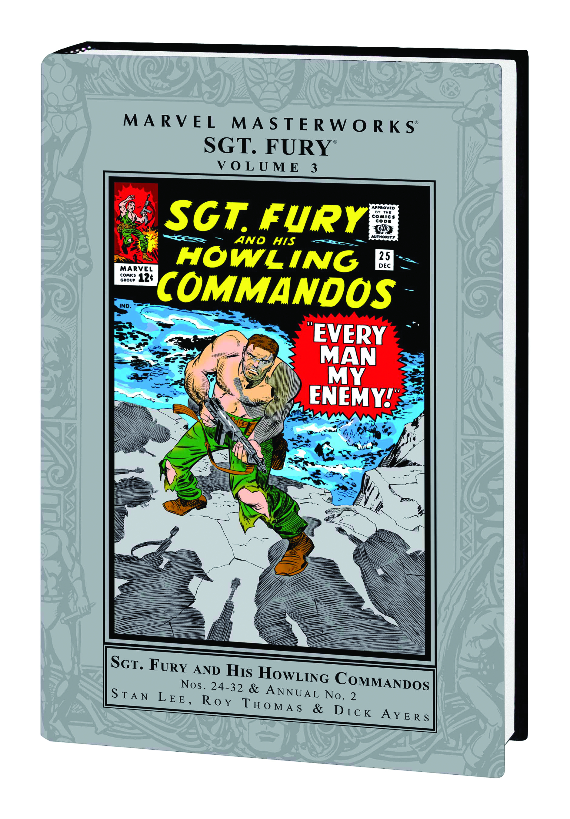 Report for duty! It's time for another Marvel Masterworks mission with Sgt. Nick Fury and his Howling Commandos! It's all-out action against the Axis powers, done in the Mighty Marvel Method as Fury and the Howlers protect the Manhattan Project and the atom bomb against Nazi spies and saboteurs; uproot an undercover agent who is none other than Red Skull; confront a traitor in their own ranks; and go mano-a-mano with Baron Strucker in a knock-down, drag-out fight battle in war-torn France. You'll also see revealed-for the first time-the origin of Nick Fury's eye-patch, follow Dum Dum Dugan as he goes it alone behind enemy lines, and experience the Allied push when Operation Overlord comes together on D-Day! Illustrated by the fightin' man's penciller, Dick Ayers, and scripted by Stan "The Man" and his armed-forces heir apparent, Roy Thomas, it's an all-out classic. Reserve your copy today or it's gonna be K.P. duty for you! Collecting SGT. FURY #24-32 & ANNUAL #2.