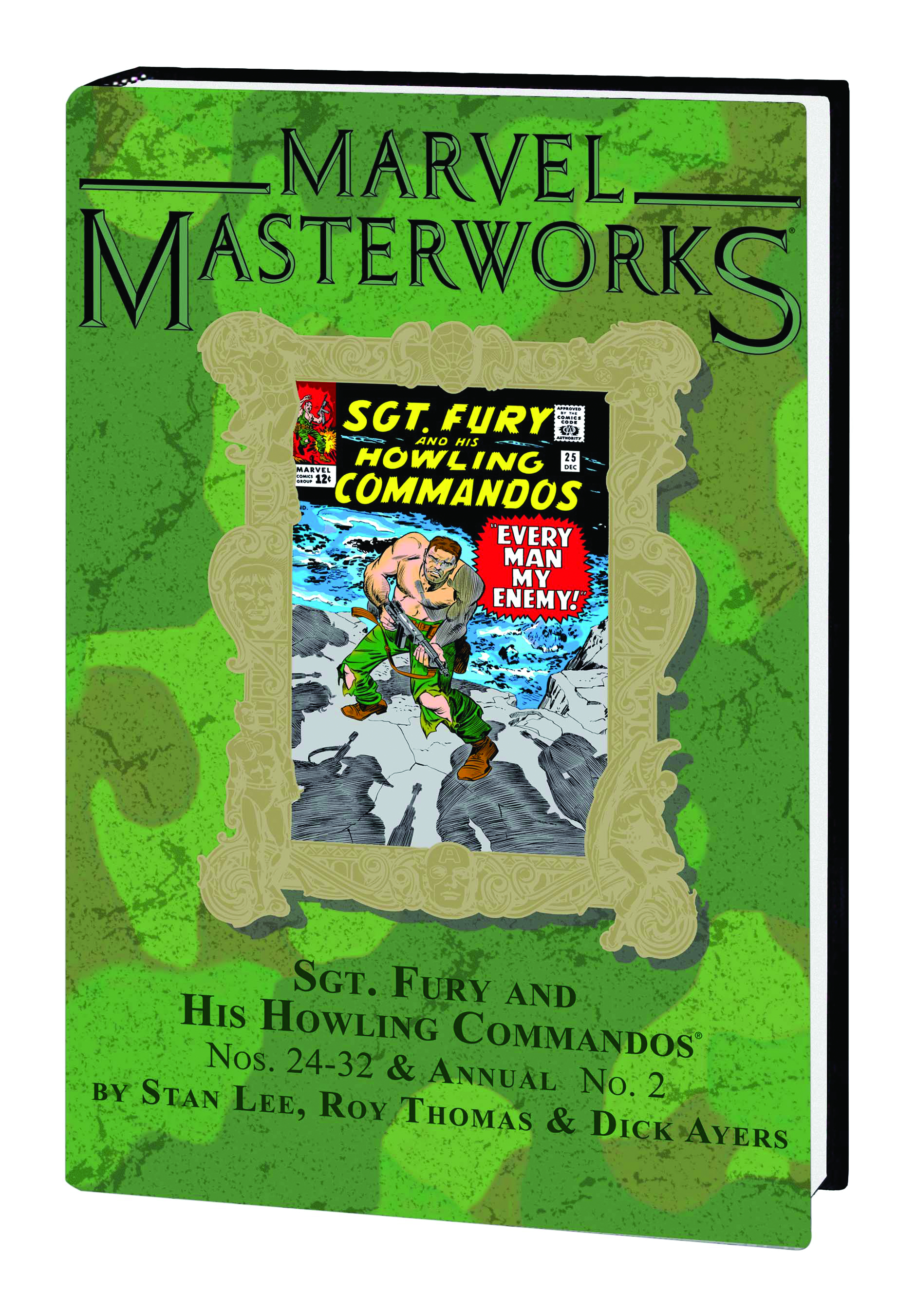 Report for duty! It's time for another Marvel Masterworks mission with Sgt. Nick Fury and his Howling Commandos! It's all-out action against the Axis powers, done in the Mighty Marvel Method as Fury and the Howlers protect the Manhattan Project and the atom bomb against Nazi spies and saboteurs; uproot an undercover agent who is none other than Red Skull; confront a traitor in their own ranks; and go mano-a-mano with Baron Strucker in a knock-down, drag-out fight battle in war-torn France. You'll also see revealed-for the first time-the origin of Nick Fury's eye-patch, follow Dum Dum Dugan as he goes it alone behind enemy lines, and experience the Allied push when Operation Overlord comes together on D-Day! Illustrated by the fightin' man's penciller, Dick Ayers, and scripted by Stan "The Man" and his armed-forces heir apparent, Roy Thomas, it's an all-out classic. Reserve your copy today or it's gonna be K.P. duty for you! Collecting SGT. FURY #24-32 & ANNUAL #2.