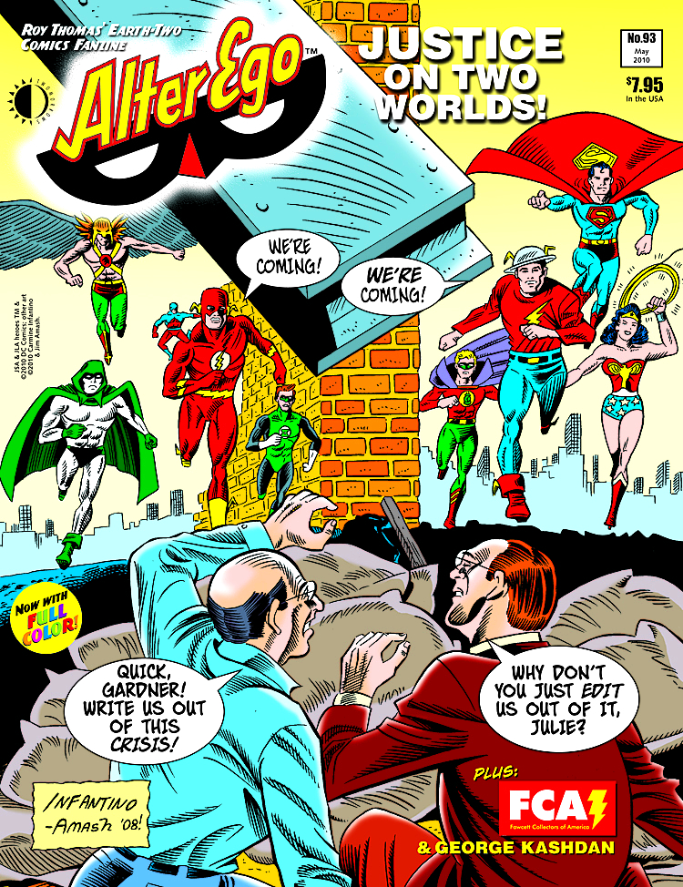 Beginning this month, each issue features a 16-page full-color section! "Earth-Two - 1961 to 1985" - two Flashes, two Green Lanterns, two Wonder Women, two Atoms, and more, with rare art by Carmine Infantino, Gil Kane, Jim Aparo, and many others. Plus, a no-holds-barred interview with Golden/Silver Age DC editor George Kashdan and much more, including a new cover by Infantino and Jim Amash.