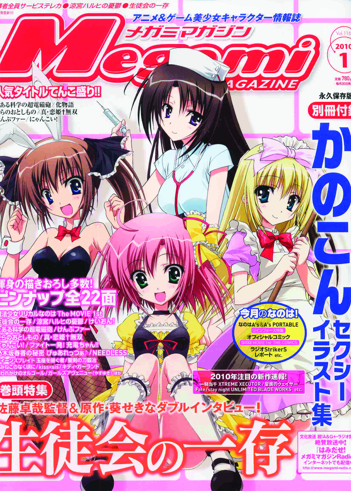 Megami is the best Japanese anime magazine for tons of free giveaways, as well as full-color artwork and posters! Includes telephone cards, punch-out "character stands," stickers, and much more!