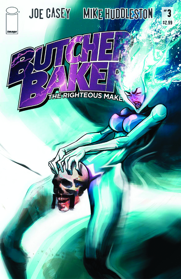 Car chases and coimcbooks are like oil and water - until now! You'll feel the motion of the ocean when you open this issue! You'll feel the wind in your hair as Butcher Baker races for his life! Plus, as more enemies conspire, Arnie B. Willard has a cosmic epiphany! Don't miss it!