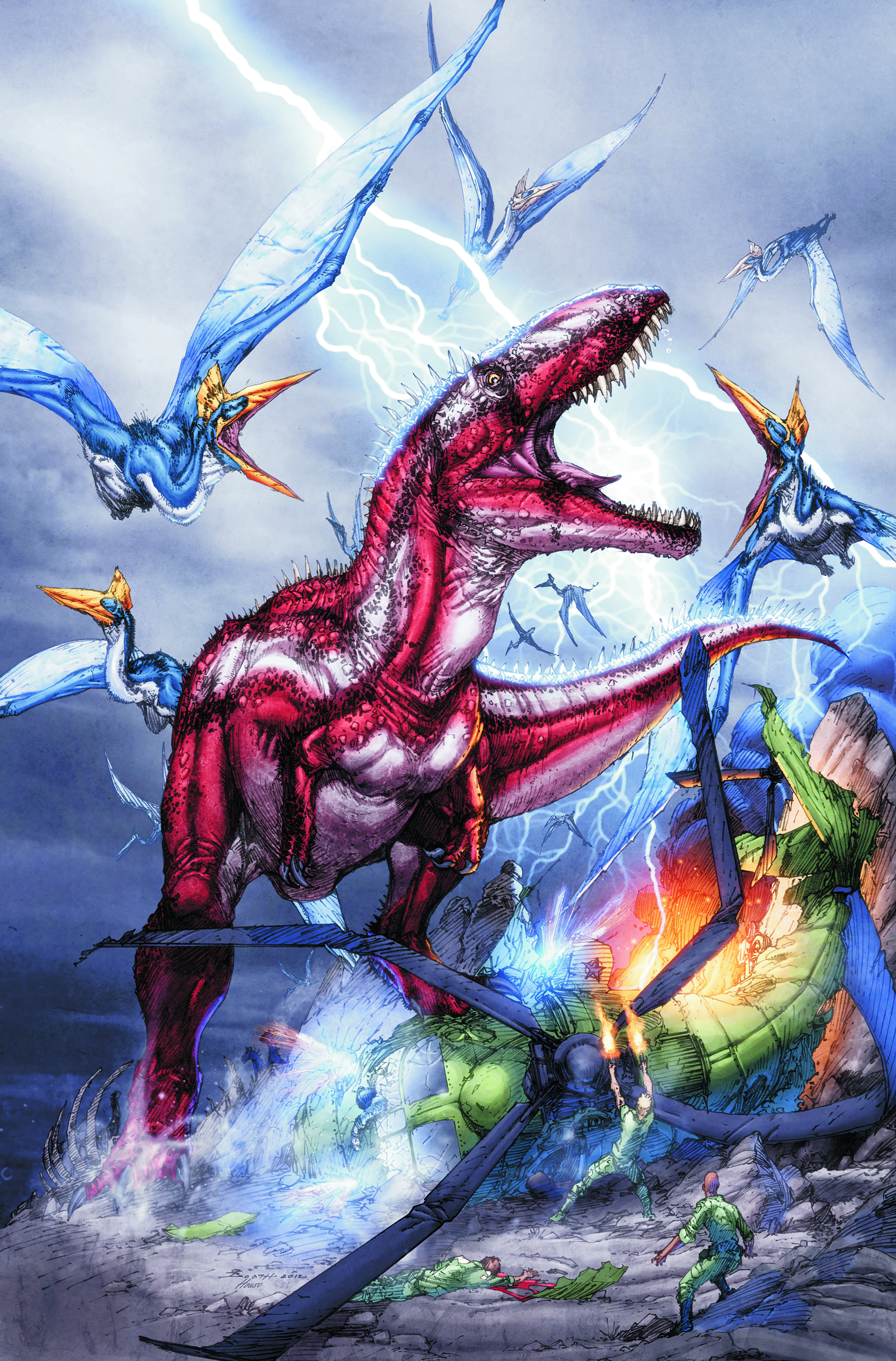 Featuring the first chapter of "WAR THAT TIME FORGOT" written by J.T. KRUL and with art by ARIEL OLIVETTI....and dinosaurs!