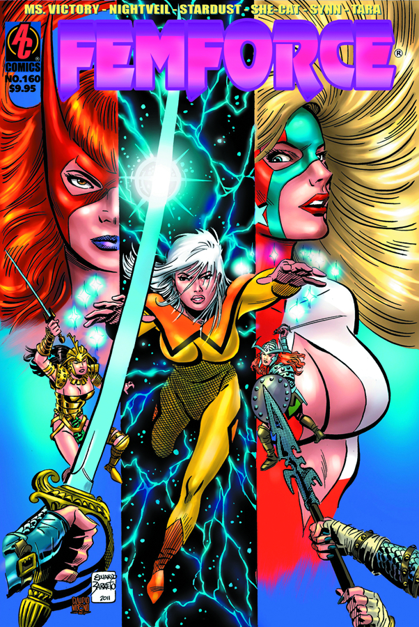 Stardust is duped by her nemesis Proxima in a story from her Rurian days, while She-Cat faces a new menace at Mardi Gras; Nightveil angsts about the villainous Wampyr and Ms. Victory meets an old threat. Plus, a Pyrogirl solo tale by Will Meugniot and Rock Baker. The late, great Eduardo Barreto was working on this issue before his untimely passing late in 2011. Unfortunately, he was not able to complete an intended interior story for the book, but he