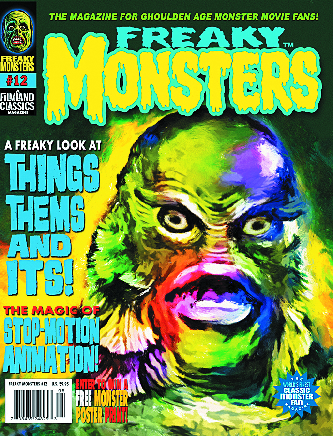 Freaky Monsters' sizzling sensational Summer issue for June and July includes "Things. Thems and Its!", a freaky overview of those non-human fiends from the Golden Days of Horror; "The Magic of Stop-Motion Animation!", a series looking at how puppets and props were made to move in classic films. Plus, an ultra-rare