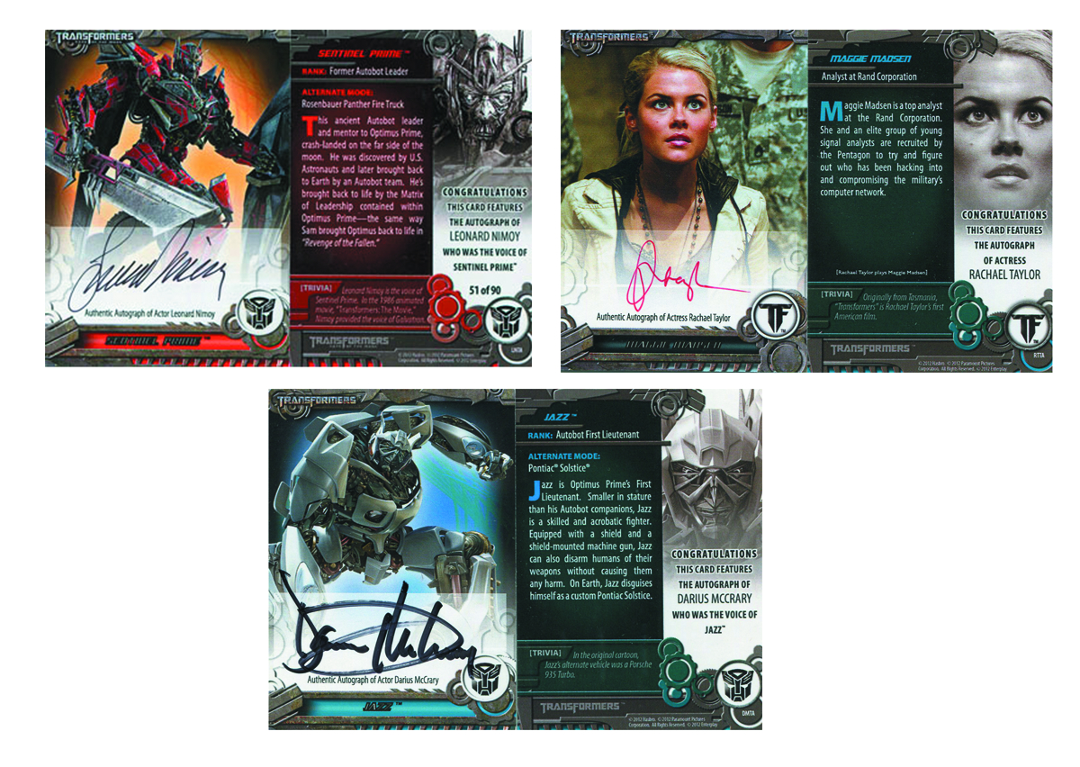 Transformers Trading Cards! Reacquaint yourself with the characters from the film, including Sam Witwicky and Sentinel Prime, and relive the epic battles between the Autobots and the Decepticons. 6 cards per pack, 24 packs per box.