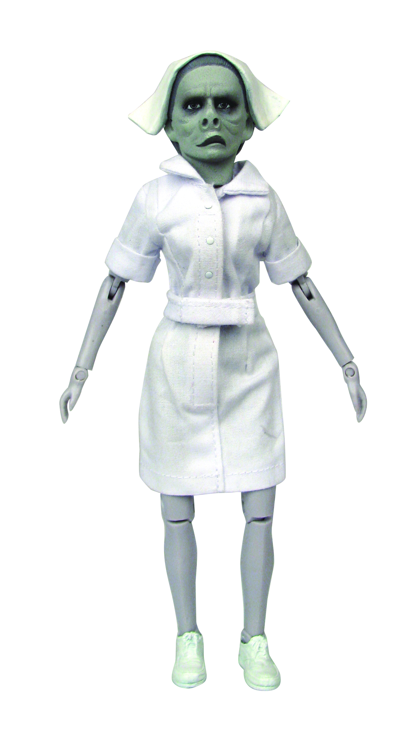 The Twilight Zone rolls on with this extraordinary assortment. Each retro 1970s-style figure stands 8" tall in shades of black and white, and features episode-specific fabric clothing, in addition to multiple points of articulation. Fans can choose from the Clown from "Five Characters in Search of an Exit" or Nurse Janet Tyler from "The Eye of the Beholder." Blister card packaging.