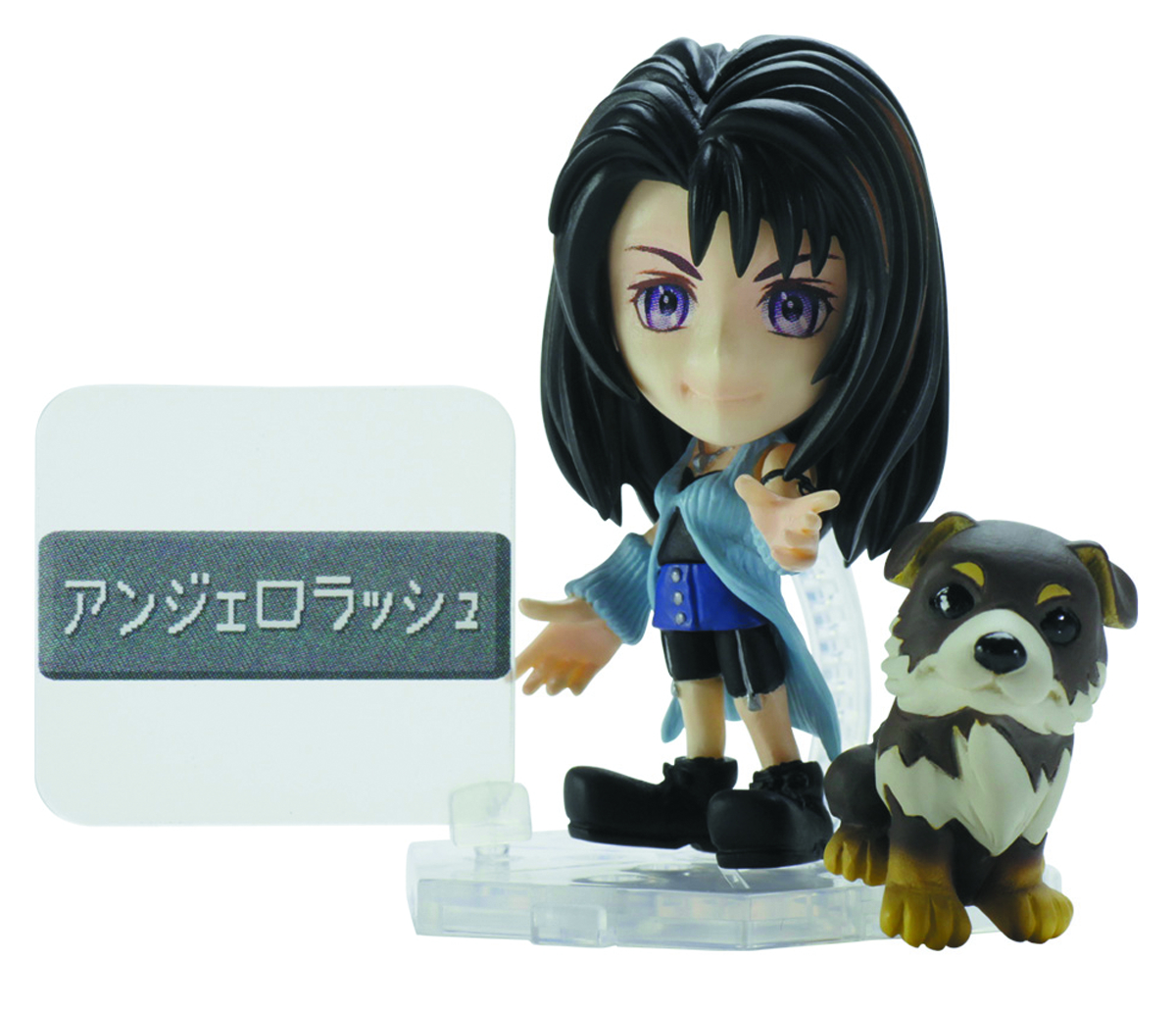 From Square Enix! Popular characters Sephiroth (Final Fantasy VII), Aerith (Final Fantasy VII), and Rinoa (Final Fantasy VIII) from the Final Fantasy series make their return in super-deformed mini figures! Each poseable figure set comes with interchangeable face and body sets, weapon(s), mini display stand and other accessories.Pose Sepiroth with his signature Masamune blade, Aerith with Cait Sith, or Rinoa with Angelo! Even at 3" tall, Square Enix Products' signature detail work and craftsmanship are apparent. With the potential to display even in a small space, these are a must-have item for Final Fantasy fans!