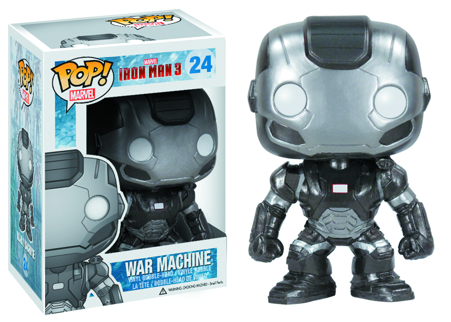 Funko's POP! Movies series presents this official series of vinyl figures based on the upcoming Marvel Studios release, Iron Man 3! Choose from: Iron Man MK42, War Machine, Iron Patriot, and Iron Man Space Suit. Window box packaging.