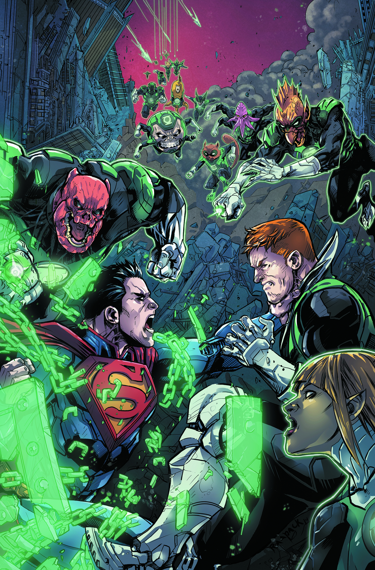 Under orders from the Guardians, Kilowog leads a team of Green Lanterns to Earth to apprehend Superman and return him to Oa to stand trial. But the Man of Steel is not about to go quietly. And the Green Lantern Corps haven't factored in Superman's new allies. The first battle begins in a war that could tear the universe apart.