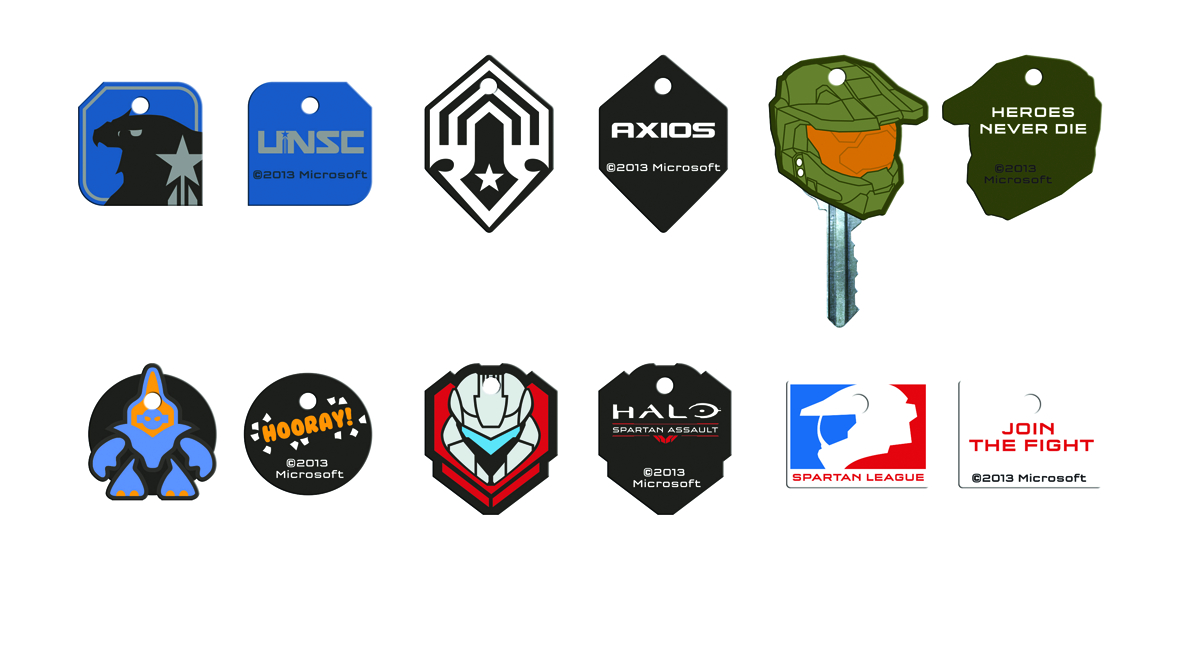 Mark your keys for identification with these Halo-inspired vinyl key caps, featuring die-cut shapes, color imagery, and logo/sayings on the reverse side. Choose from: Master Chief Helmet, Falcon, Axios, Grunt, Spartan Assault, or Spartan League!
