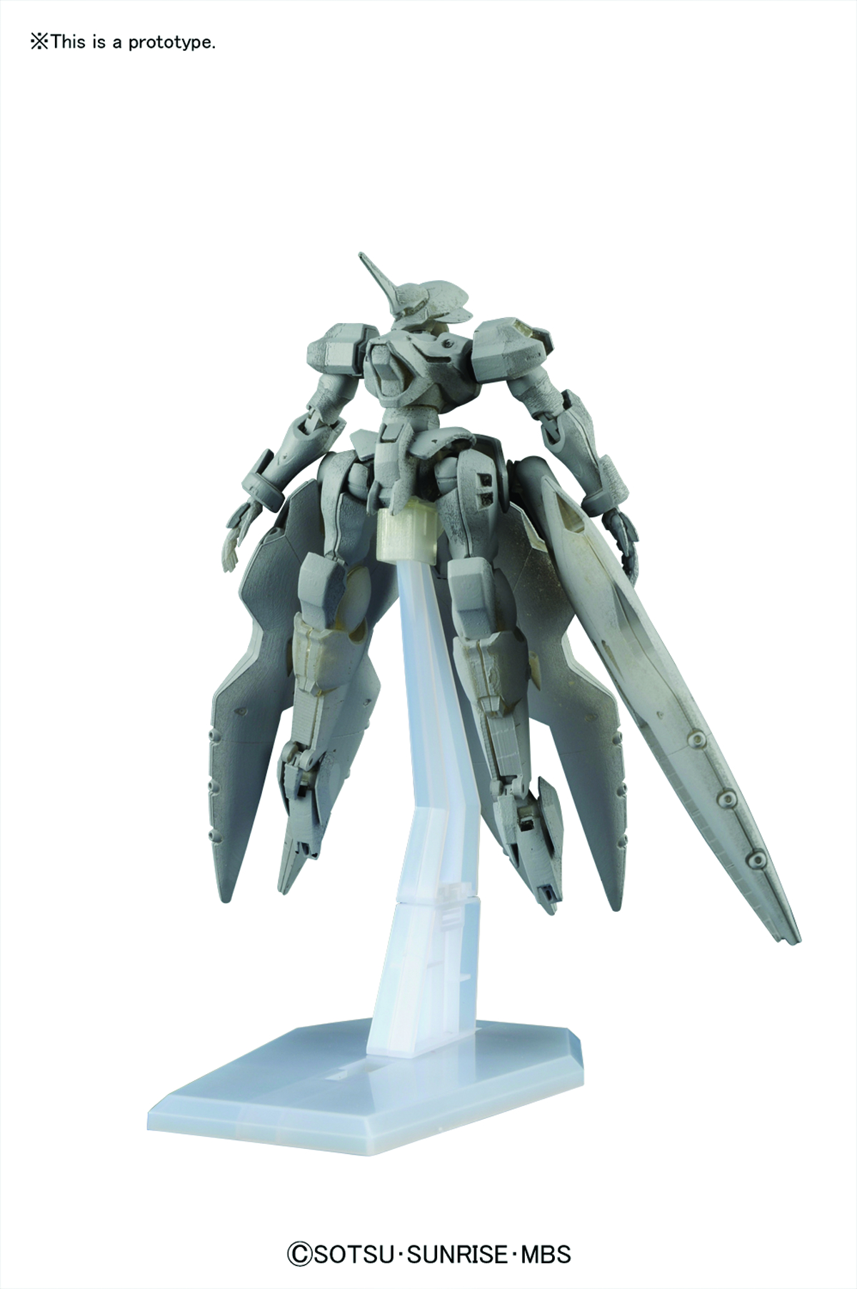 Gundam Reconguista features ankles that can be folded to recreate flight; clear effects parts for the mega cannon and beam gun; 2 Beam Sabers; 3 bits; 3 large bit effects parts; 3 small bit effects parts; a bit display base; and a display base for the complete mecha!