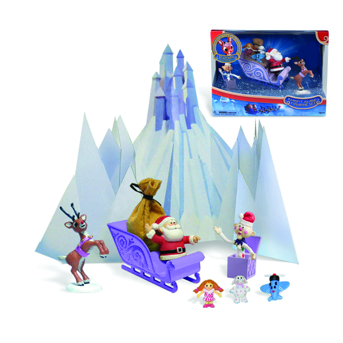 Revisit the Island of Misfit Toys with this set that includes Rudolph, Santa (with his sleigh), Charlie-in-the-Box, Dolly, the Spotted Elephant and the flightless Plane, complete with a backdrop of the mountain leading to King Moonracer's castle!