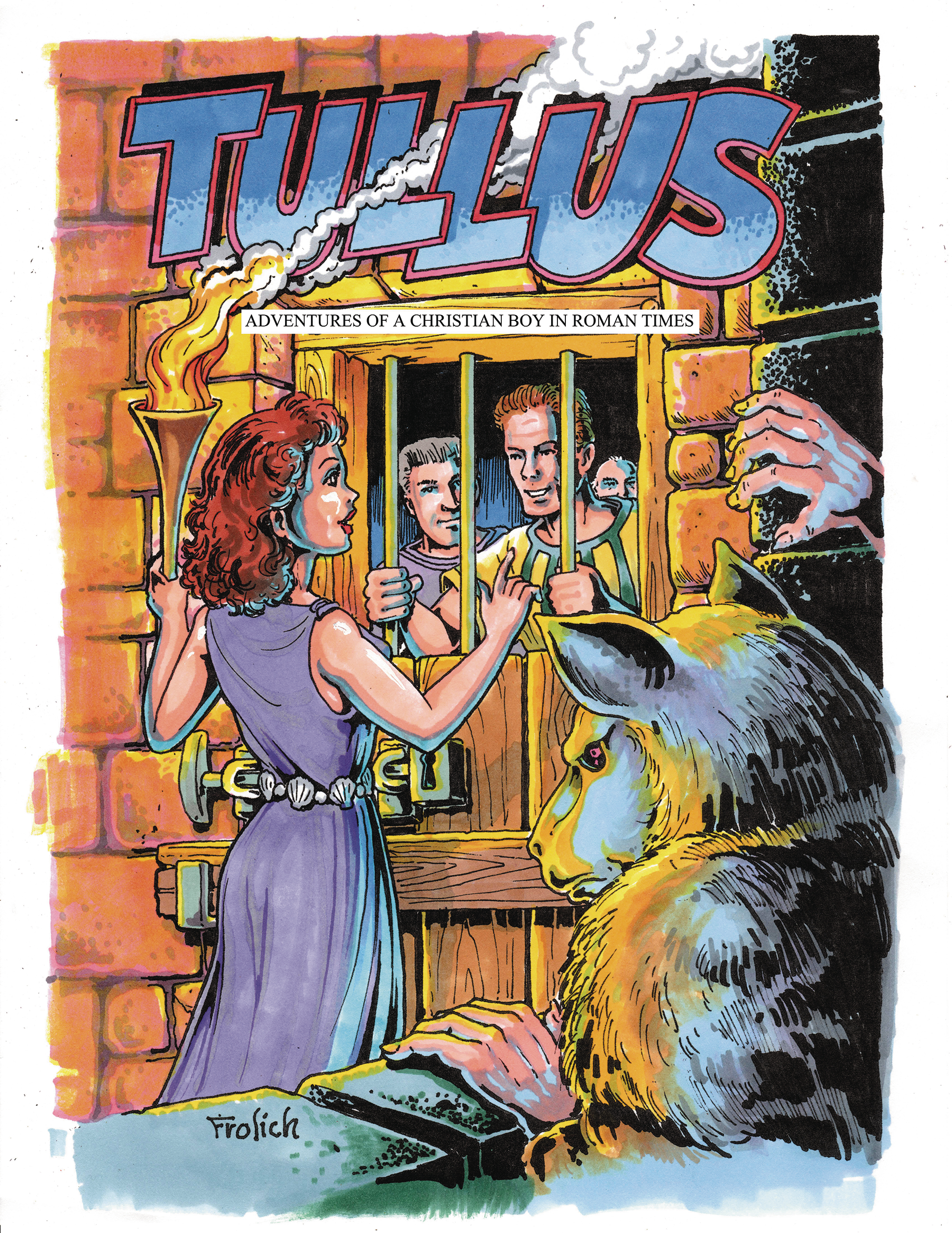 Tullus comic strip was about a young Roman Christian in the first century CE. Tullus, a Christian in Roman times, is trying to help his friends recover a treasure. The treasure has been stolen by the wolf clan, led by a mysterious figure named Gold Wolf. Tullus and his friends are captured and enslaved by the wolf clan, but Tullus, thanks to his Christian faith, earns the respect of his captors. Gold Wolf falls in love with Julia, the daughter of the man to whom the treasure originally belonged. Will Tullus win the freedom for himself and his friends?