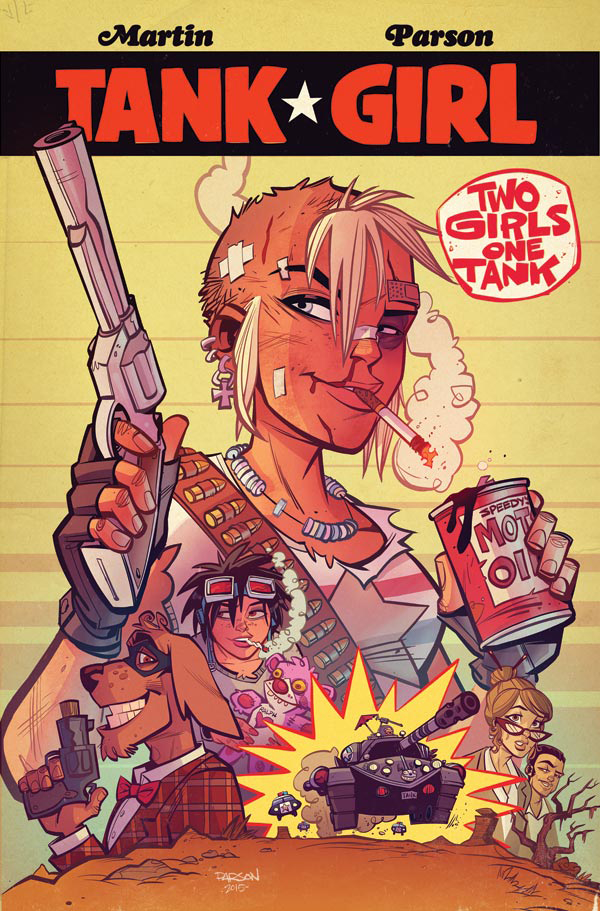 Fresh off the back of their latest calamitous chapter comes this shiny new Tank Girl tale from series creator, Alan Martin and artist extraordinaire, Brett Parson! Expect a healthy dose of delirium and plenty of ball-crunching action in this high-octane crosscountry skirmish that asks the question: is this world really big enough for two Tank Girls?! Strap yourself in, folks; It's gonna be one helluva ride!