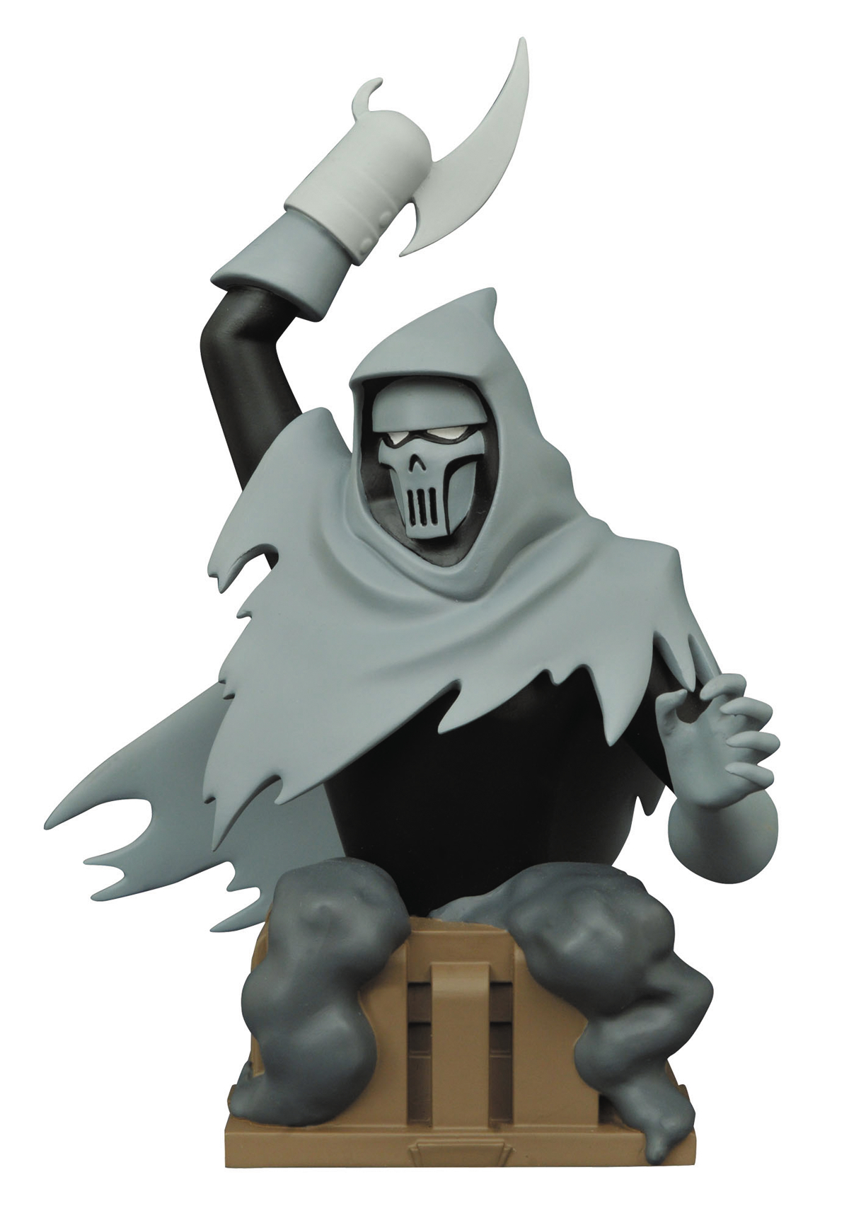Batman: Mask of the Phantasm, it's the first-ever resin bust of the Phantasm! First seen in 1993, the mysterious assassin known as The Phantasm stalked Gotham's crime bosses until Batman interfered, and now this 6-inch bust can sit on your shelf, atop an art-deco pedestal. Limited to only 3,000 pieces, it comes packaged with a certificate of authenticity in a full-color box. Sculpted by Varner Studios!