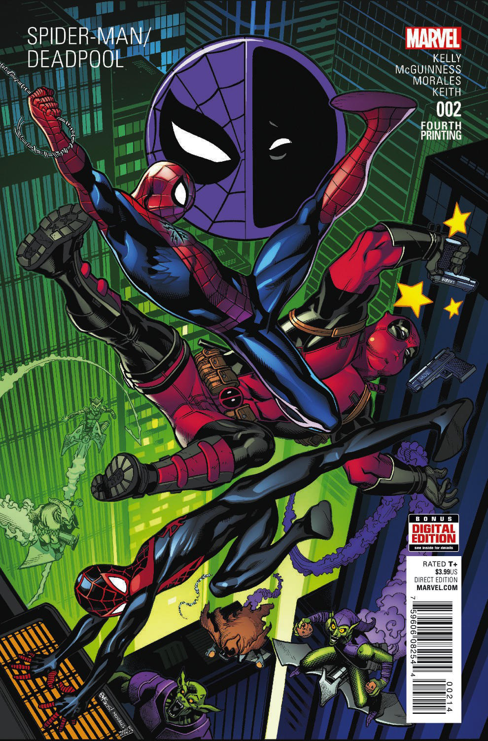 From Marvel Comics. Spidey and Deady (Pooly?) get a visit from Miles Morales! A goblin invasion puts Deadpool and the Spider-Men in a tight spot! Rated T+. Scheduled to ship 05/25/16. (161)