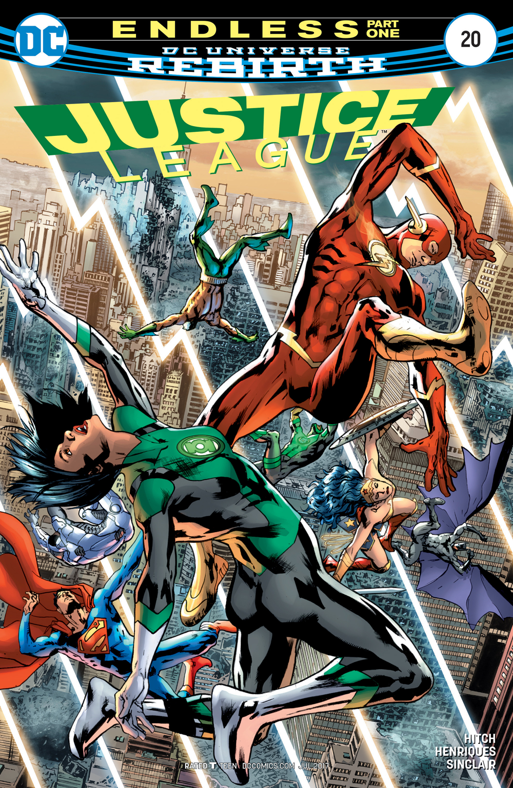 "ENDLESS" part one! The League find themselves trapped in a time loop after they are attacked by a man wielding a mysterious alien weapon. The result is one member dead, and many civilians obliterated!