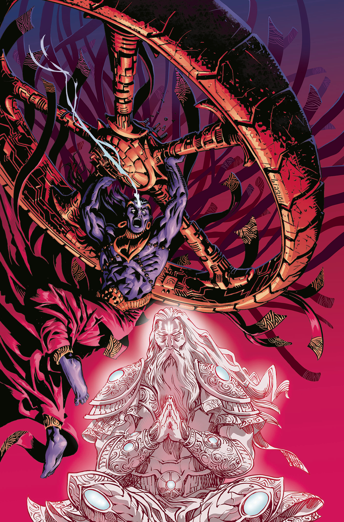 Grant Morrison's epic creation continues with Bheeshma being challenged head on by Arjuna and Krishna. Meanwhile, the mysterious warrior Shikhandi has also made Bheeshma a target but what is the reason for this vendetta? The battlefield explodes with action in this exciting issue!
