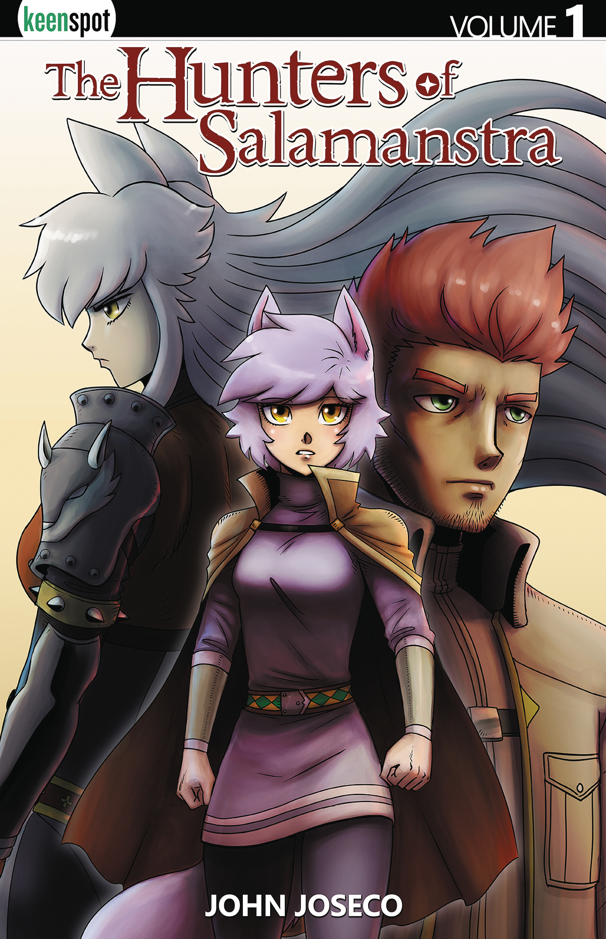 The former Kingdom of Salamanstra lies in ruins, one-hundred and thirty years after the Great Calamity. Now, strange monsters emerge from the mysterious Black Gates to plague and terrorize the land. Follow one girl's journey from loneliness and isolation to adventure as a Hunter of Salamanstra! Volume 1 collects