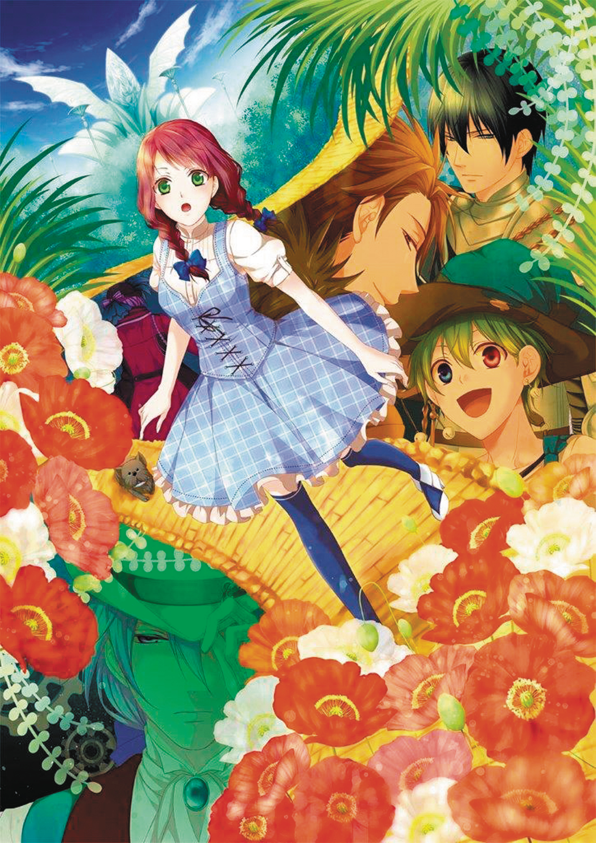 shoujo style. Dorothy Gale, along with her beloved dog Toto, finds herself whisked away by a tornado to the mysterious land of Oz. Something about this strange place feels oddly familiar, but Dorothy just wants to go home. Following the advice of a kindly Witch, Dorothy must travel to the Emerald City and seek out the Wizard of Oz, who alone has the power to send her back to her world. Alongside a trio of fascinating new companions, and a mysterious young man known as "Zero," Dorothy must follow the Yellow Brick Road on her journey to escape Oz and some of its less than friendly denizens, the evil Witches. Yet even though all this seems to be happening for the first time, Dorothy feels as if they have all met before!
