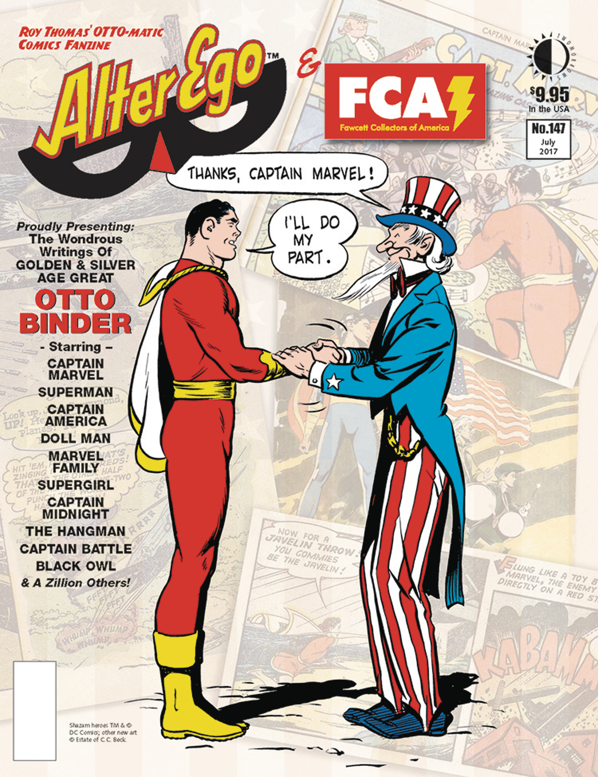 Alter Ego features a giant-size FCA [Fawcett Collectors of America] section, with special intros by P.C. Hamerlinck and Bill Schelly - and Binder's own personal script records, accompanied by illos from his greatest series, including Captain Marvel, Superman, The Marvel Family, Captain America, Mary Marvel, Black Owl, Captain Marvel Jr., Doll Man, Supergirl, Captain Battle, Legion of Super-Heroes, Captain Midnight, and a zillion more! With art by Beck, Simon & Kirby, Swan, Schaffenberger, Avison, Boring, [jack] Binder, Mooney, Plastino, Pfeufer, Shores, and the super-stars of two comics eras!