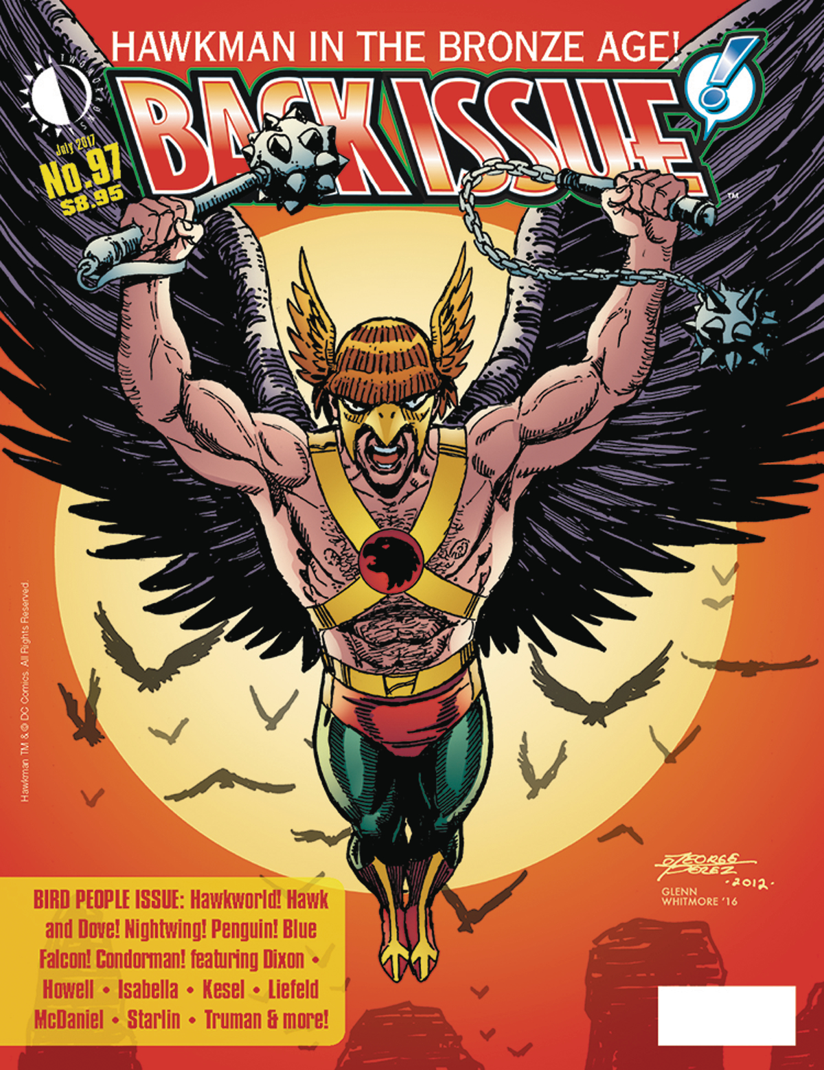 The Bird People Issue! "Hawkman in the Bronze Age": his Shadow War and monthly series, JLA squabbles with Green Arrow, Golden Eagle, and more! Plus: Jim Starlin's Superman/Hawkgirl team-up, Timothy Truman's