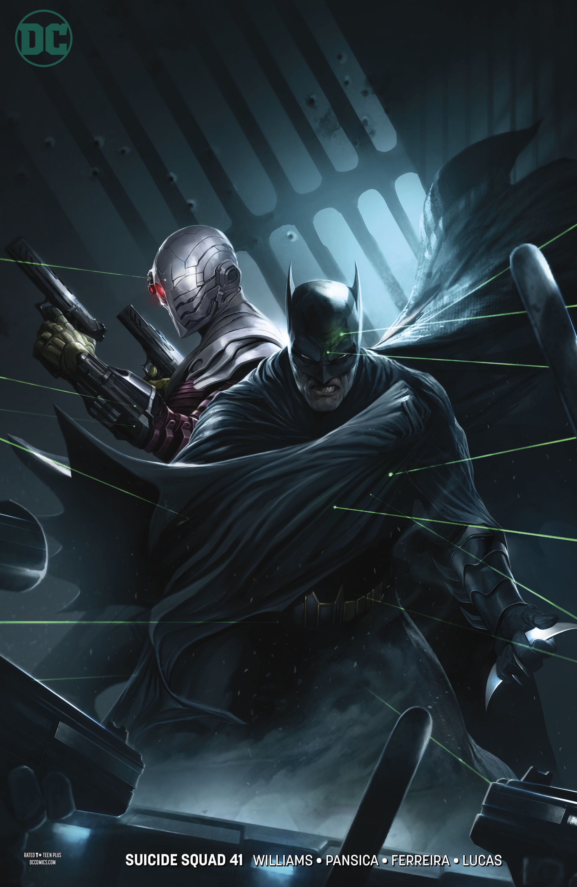 "CONSTRICTION" part one! Batman has broken Deadshot out of Belle Reve! Now the Dark Knight and the assassin who never misses have a new mission: rescue Deadshot's daughter from the clutches of Kobra! But Amanda Waller's not having it, and she's determined to drag her prisoner back at any cost!